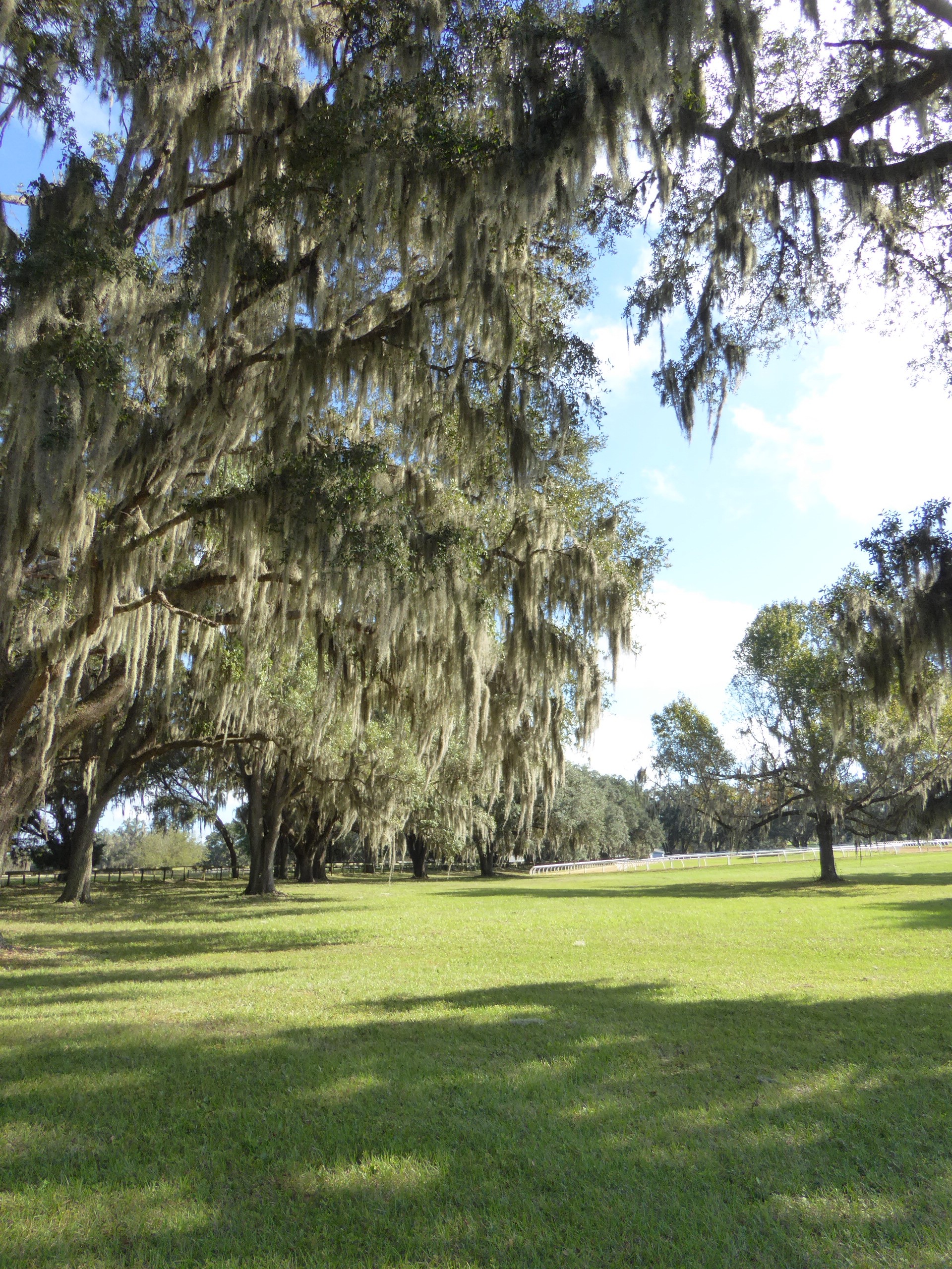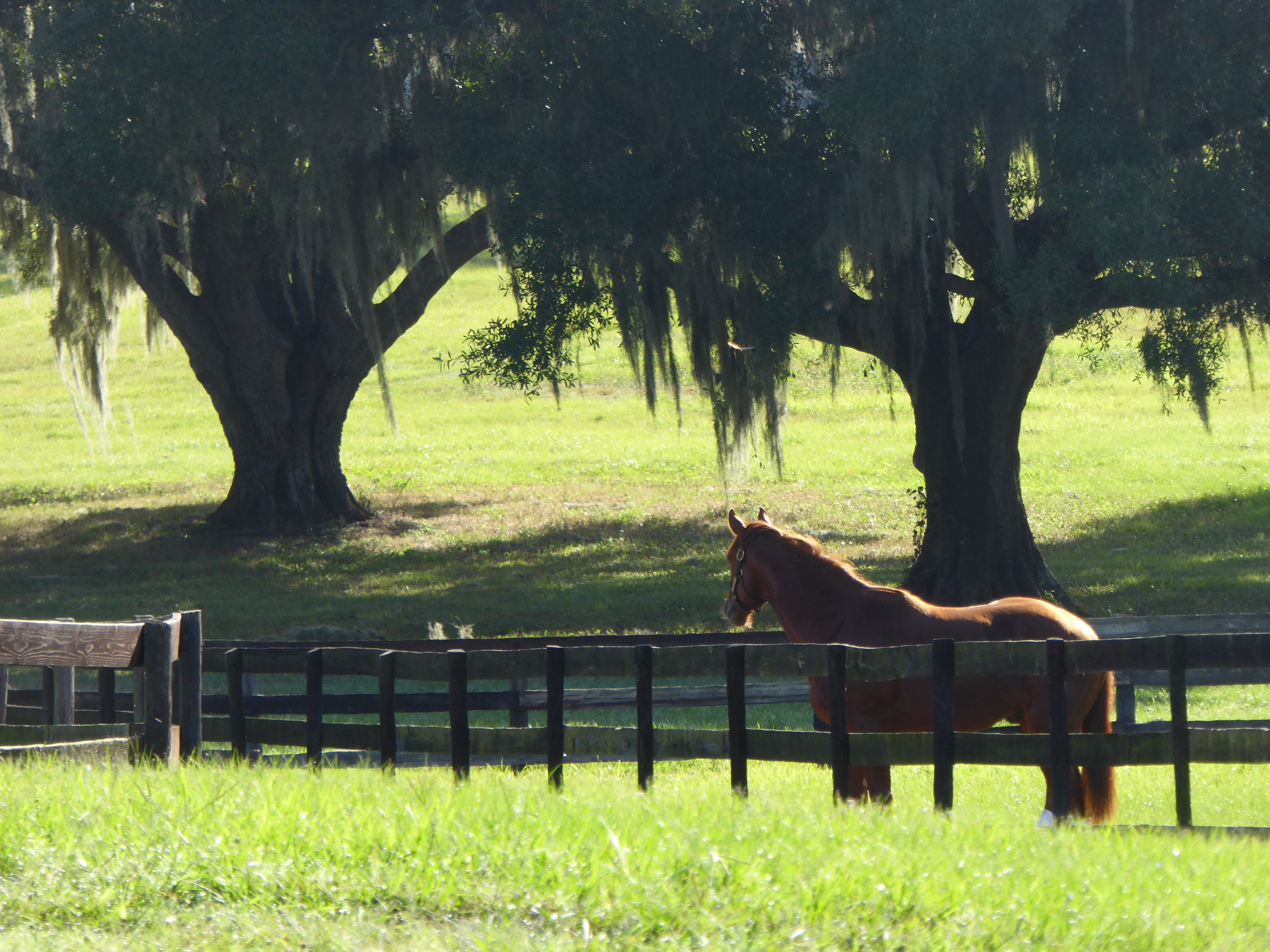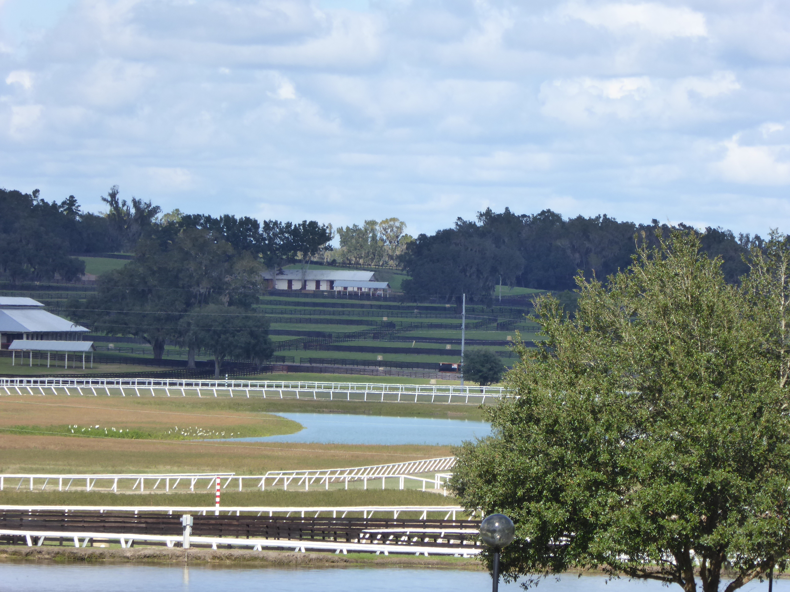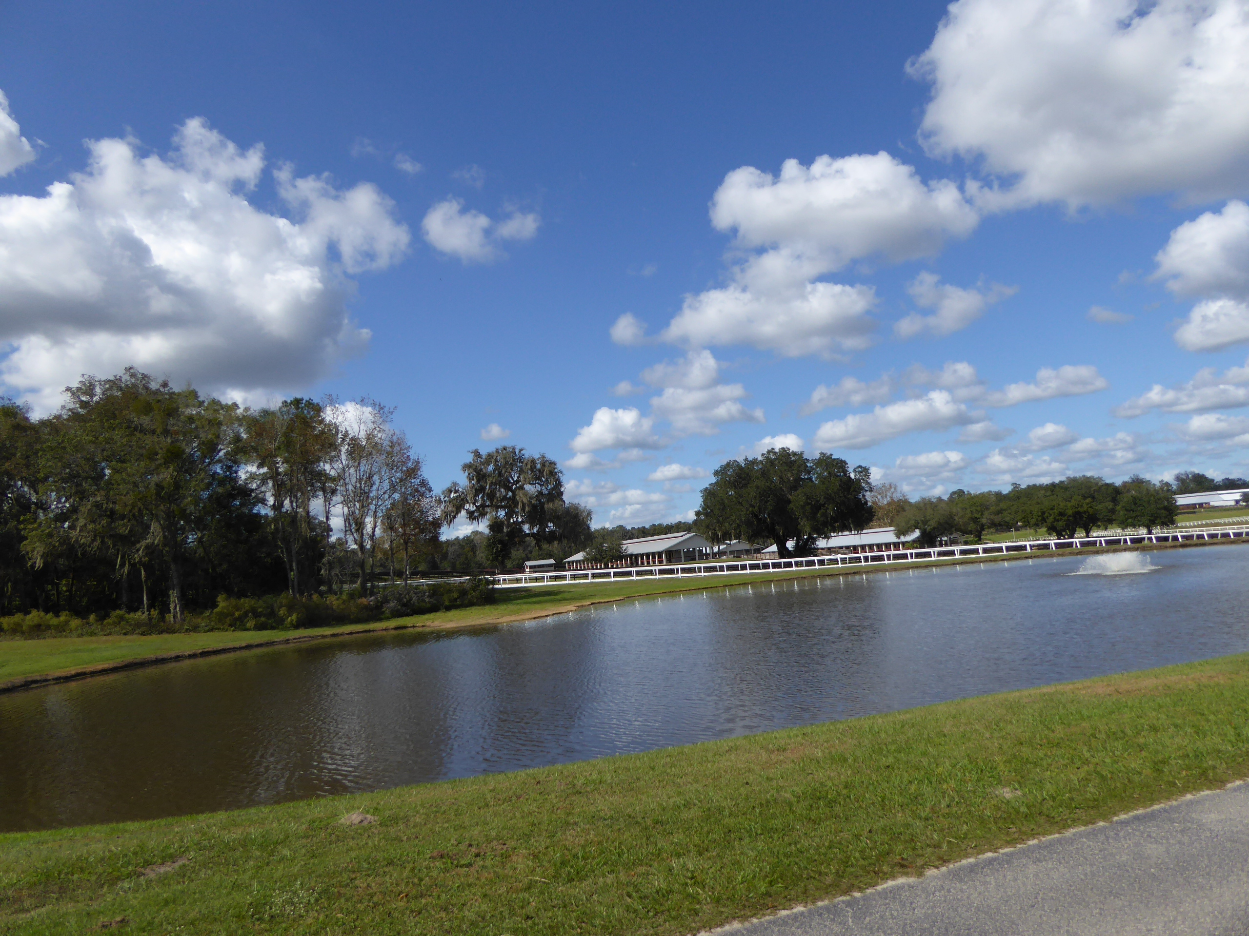 Early November, 2015. We came to Florida earlier than we expected. Specifically, we were in Connecticut in mid-October and learned that we needed yet another repair…this time we feared the large, driver side slide-out floor needed to be replaced. Since winter was setting in and all the RV facilities were winterizing coaches, we couldn’t find anyone to help us and even if we could have, time didn’t permit us to stay any longer in New England because of the weather. Florence located a top notch RV dealership (the old Monaco plant) near The Villages/Wildwood in Central Florida, so off we went. The good news is that we didn’t need a 5 week-long $15,000 repair. The bad news is that even so, we spent a pretty penny and were detained a total of two weeks. So, our arrival in Gulf Shores was an entire week late. Oh, well. Anyhow, my pictures of Florida are not nearly as complete as they’ll be when we finally explore the state (perhaps next year) and see what it has to offer. But we did manage to find one very interesting thing to do while our repairs were being done. We drove a half hour to Ocala, in Marion County and toured some of the absolutely incredible thoroughbred horse farms there. Marion County is the fourth largest thoroughbred breeding, breaking and training facility in the world. See my post dated early November, 2015 for some information about this fascinating area.